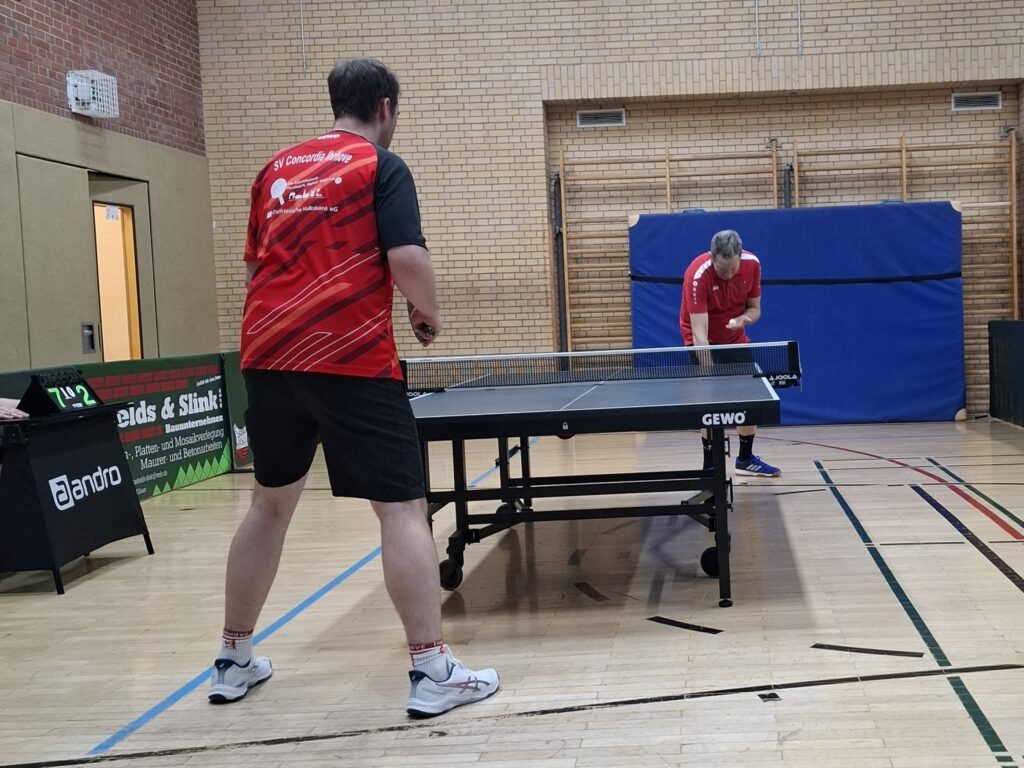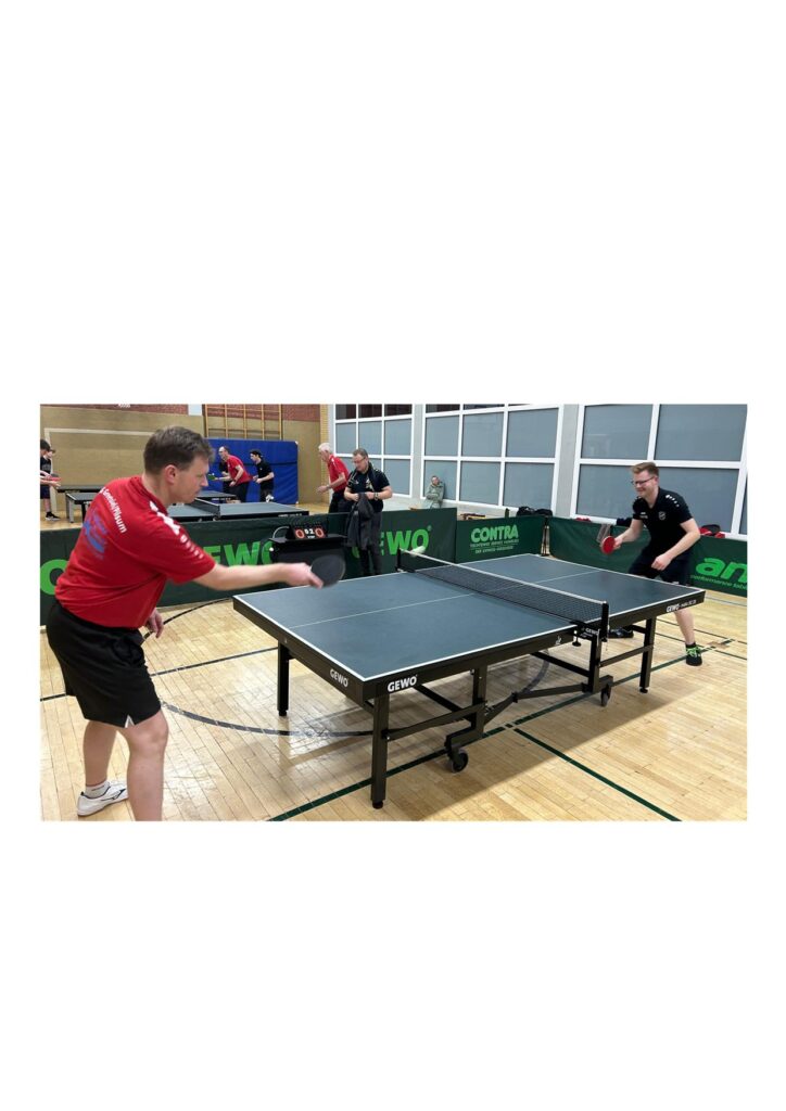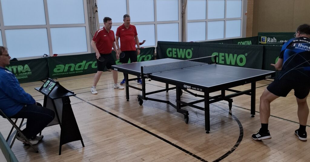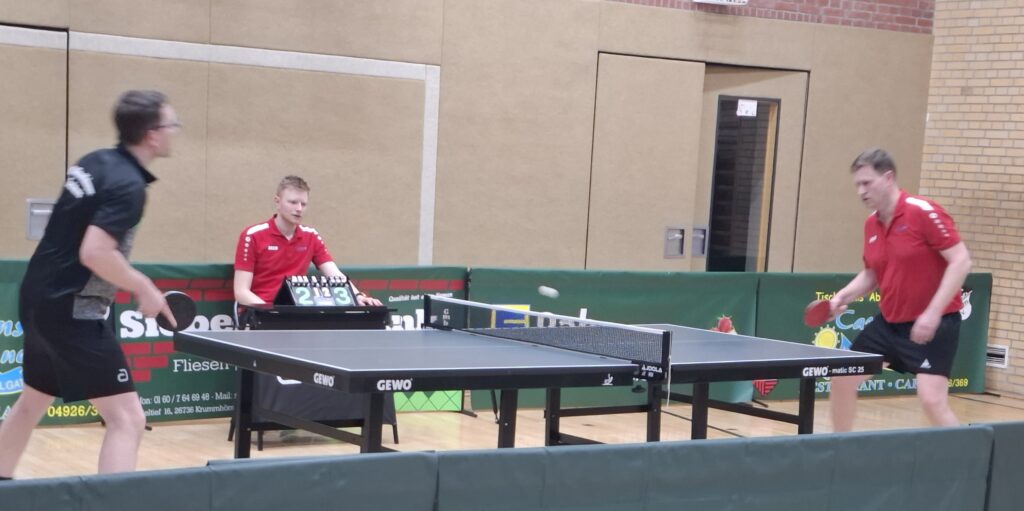 Zunächst standen die Doppel auf dem Programm. Zwar brachten Reents / König Ysker / Brauer phasenweise in Bedrängnis, doch am Ende setzten sich Ysker / Brauer mit 3:1 durch. Nicht ganz mithalten konnten Puschke / Rah, beim 12:14, 9:11, 11:6, 9:11 gegen Mehrmann / Conrad, obwohl