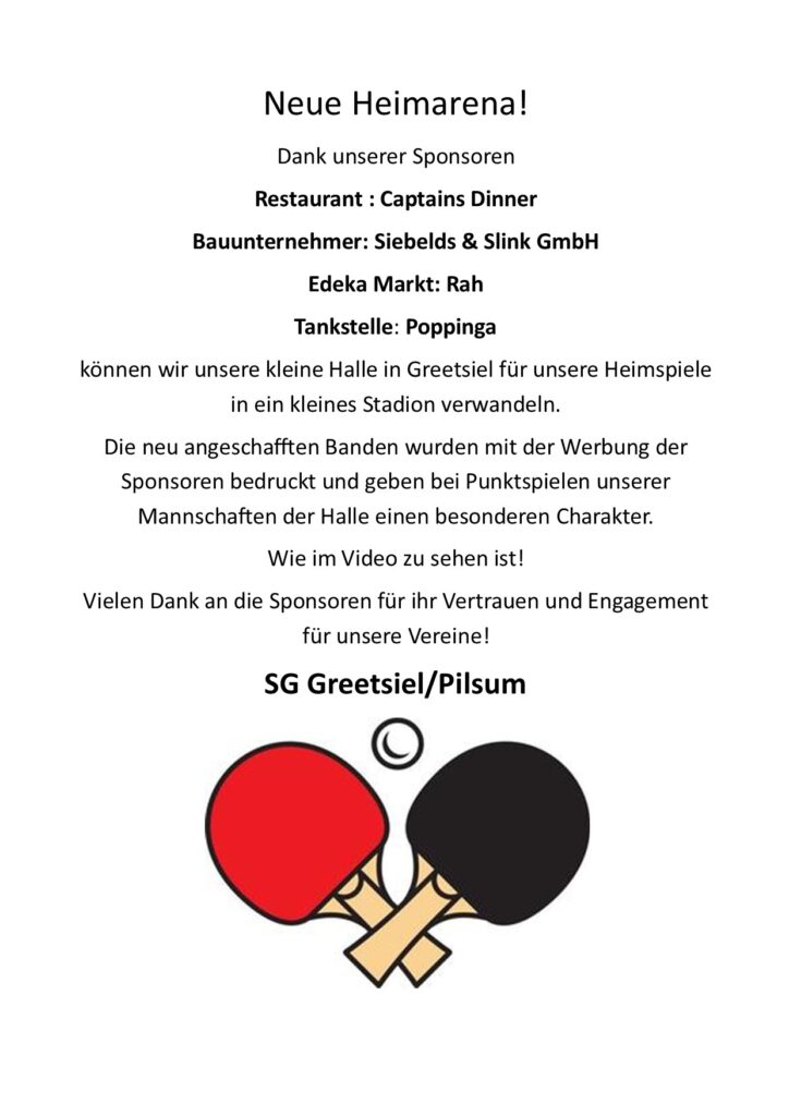 Die Sparte Tischtennis ist seit 2016 Bestandteil unserer Abteilungen. Zusammen mit dem TV Greetsiel haben wir eine gut funktionierende Sparte auf- und ausgebaut. Aus anfänglich einer Mannschaft sind mittlerweile drei geworden. Die 1. Herren spielt in Zukunft wieder auf Bezirksebene und die 2. sowie die 3. Herren auf Kreisebene. Alle Mannschaften halten sich in ihren Klassen und haben Potenzial nach oben.
