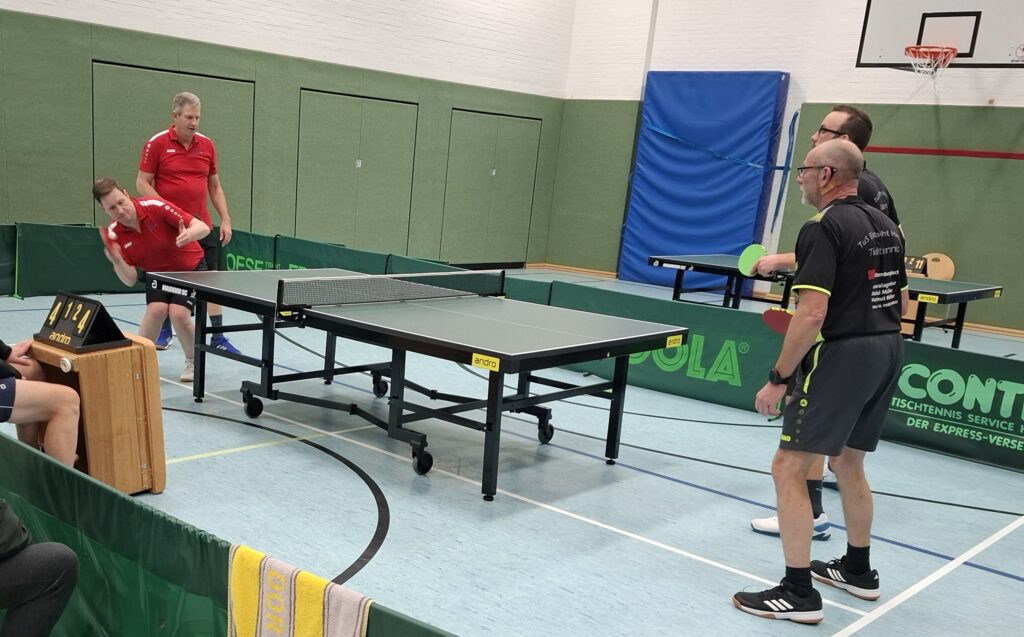 Punktgewinn. Arno Ysker konnte im Spiel gegen Matthias Conrad einen Siegpunkt für die Mannschaft beisteuern und gewann mit 3:1 in den Sätzen. Das Match hätte also insgesamt auch knapper ausgehen können. Die richtige Herangehensweise hatte Klaus Brauer beim wenig später folgenden Erfolg in drei Sätzen gegen Malte Reents von Beginn an. 21:9 (Brauer) bzw. 14:12 (Reents) lautet die bisherige Saison-Bilanz an Siegen und Niederlagen der beiden Aktiven nun auf Grundlage dieses Matches. Der neue Zwischenstand war 8:4. Über eine lange Zeit dagegenhalten konnte Tammo Brauer beim 2:3 gegen Thorben König. Das Spiel, in das er als großer Außenseiter gegangen war, verlor Brauer dennoch im 5. Satz. Bei seiner 1:3-Niederlage gegen Norbert Hase konnte Christian Rah am Nachbartisch den Punkt für die Gäste trotz des Gewinns des ersten Satzes